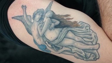 March 19, 2017Published by Battman on March 19, 2017Categories Chef TatsRomance is Alive and Well: Chef John Villa’s TattooThis is a famous portrait of Cupid and Psyche. It’s about two people that did whatever they could to be with one another. To me, it symbolizes my relationship with my wife; we have been together since we were teenagers.