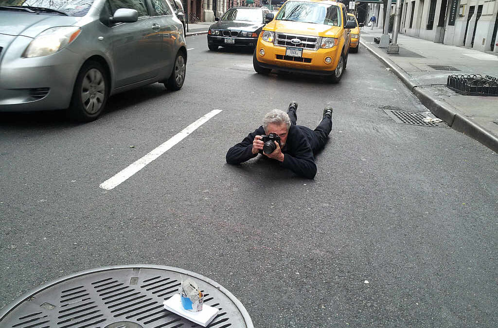 August 7, 2012Richard Leach, the pastry chef at Park Avenue Winter, wanted to shoot his dish for the upcoming book “Street Eats” outside. Right in front of the restaurant on the side walk was a manhole cover. I liked the one in the street better but Richard thought it would be too dangerous! So I lay down on the side walk and not 10 seconds later a woman in an electric powered wheel chair came around the corner passing awfully close to me. Seeing as it wasn’t any safer on the side walk and the manhole cover in the street was a whole lot nicer…… the photo tells the rest of this story.