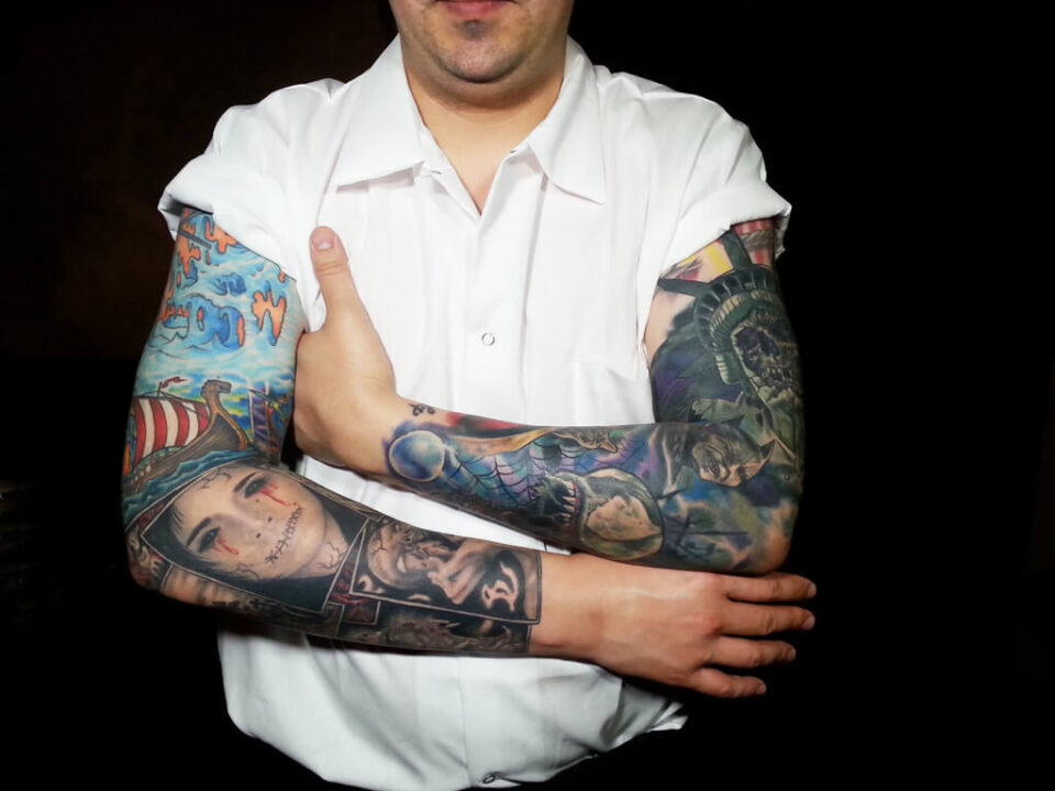 February 24, 2014Published by Battman on February 24, 2014Categories Chef TatsDerrick StyczekThis chef's tattoo inspirations include Scandinavian mythology and New York City super villains.