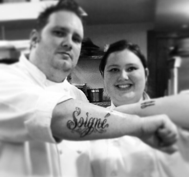 April 4, 2014These are our father daughter bonding tats. My name is Richard Sweed and I am Executive Chef at The Legend at Bristlecone in Wisconsin and my daughter Hailee starts at The CIA [Culinary Institute of America] in December to become a pastry chef.